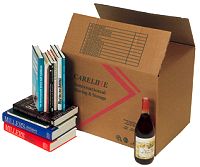 Small sturdy carton suitable for small heavy items such as books, videos, CD's, wine/liquor.